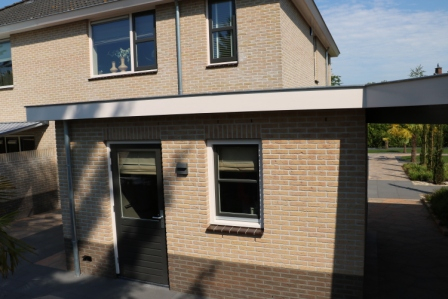 Vlak bij het centrum van Nijkerk staat deze zeer nette twee onder één kap woning. Een aantal jaar geleden is deze woning flink onderhanden genomen. Er is een schuur naast de woning bijgebouwd. Tussen de woning en de schuur zit een overkapping, een tussenlid. Dit tussenlid zit verbonden aan de uitgebouwde bijkeuken.